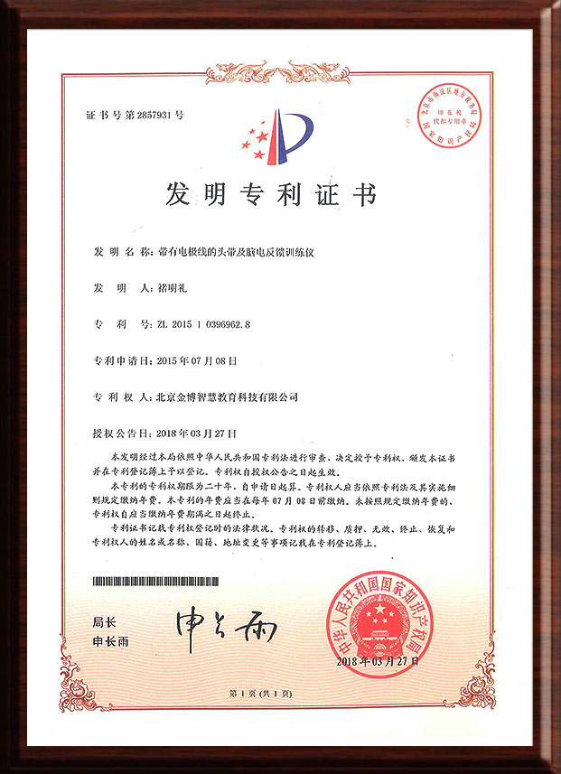 主持研发我国首个自主知识产权脑电反馈训练仪